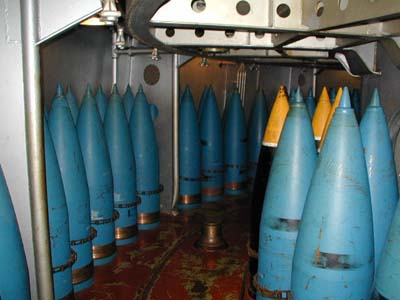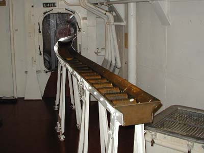 ![]() Rollers allow the transfer of powder from deep in the ship |